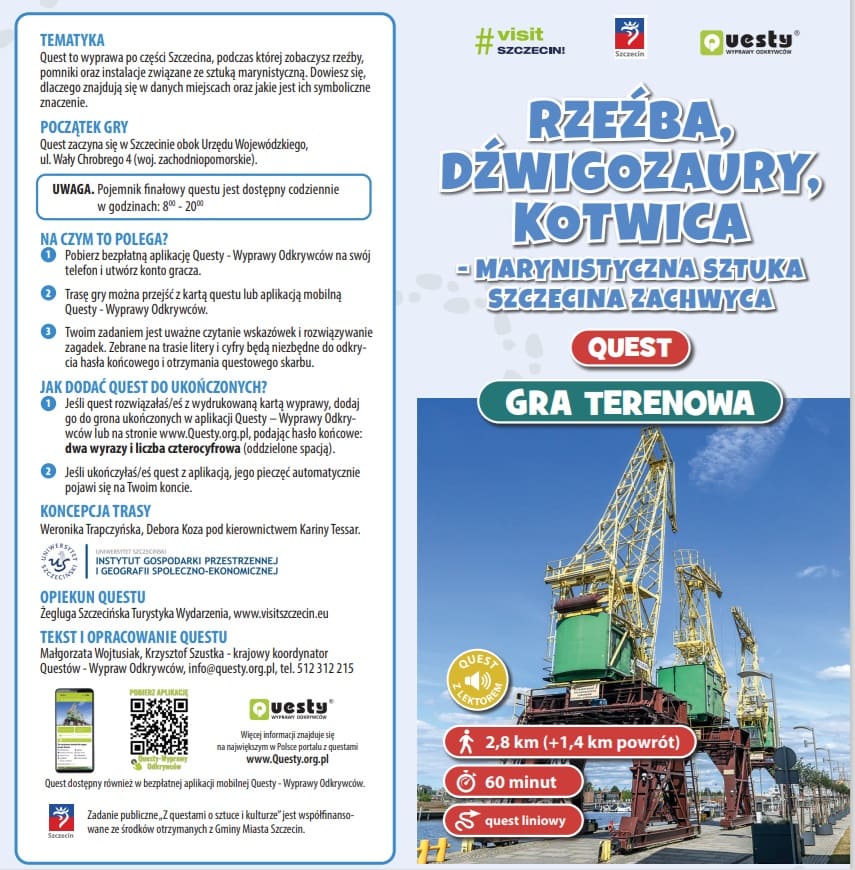 Koncepcja trasy: Weronika Trapczyńska, Debora Koza pod kierownictwem Kariny Tessar ⁦https://questy.org.pl/quest/rzezba-dzwigozaury-kotwica-marynistyczna-sztuka-szczecina-zachwyca