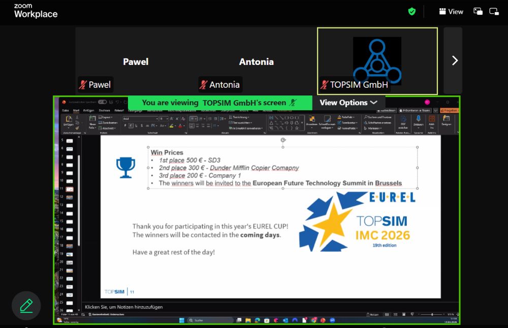 Finał, który odbył się w dniach 18-19 kwietnia 2026 r., był zwieńczeniem wielotygodniowych zmagań. Zespół zarządzał wirtualnym przedsiębiorstwem w dynamicznym środowisku rynkowym, podejmując kluczowe decyzje w obszarach: