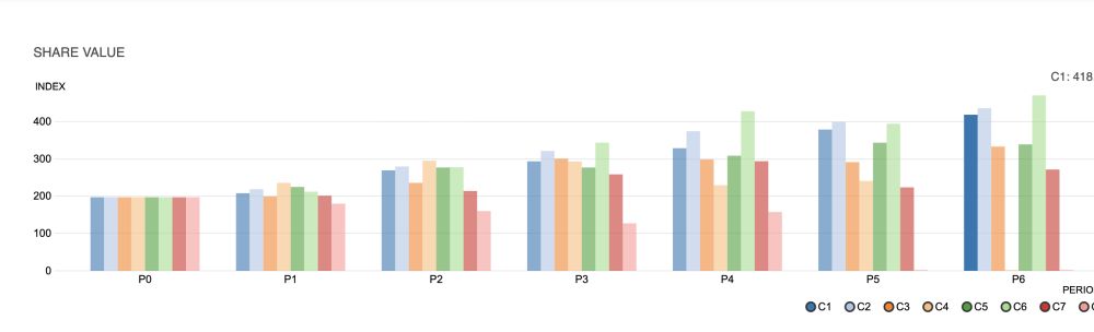 Dzięki przemyślanej strategii, zespół sukcesywnie zwiększał wartość rynkową firmy (Share Value), co pozwoliło na pokonanie silnej konkurencji z całej Europy i zdobycie miejsca na podium.
